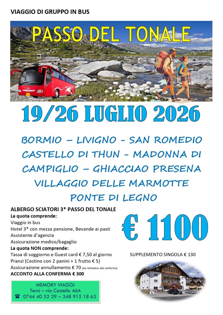 MEMORY VIAGGI sede legale: via Castello, 46/A​ 05100 Terni - tel: 0744 40 52 29 / 348 915 18 63 - mail: info@memoryviaggi.it codice SDI: M5UXCR1 - P.I. 01574920557 - CCIAA TR 107891- Licenza/Autorizzazione: REGIONE n.7282 del 05/08/2016 - pec: memoryviaggi@pec.it - Assicurazione RC: Europe Assistance Polizza n. 2381700 - 1/4/26 - Fondo di garanzia: “Il Salvagente” Soc. Coop. a r.l. Torino n. 2026/1-0132 con scadenza il 31/12/2026 - Direzione Tecnica: Lucci Monica